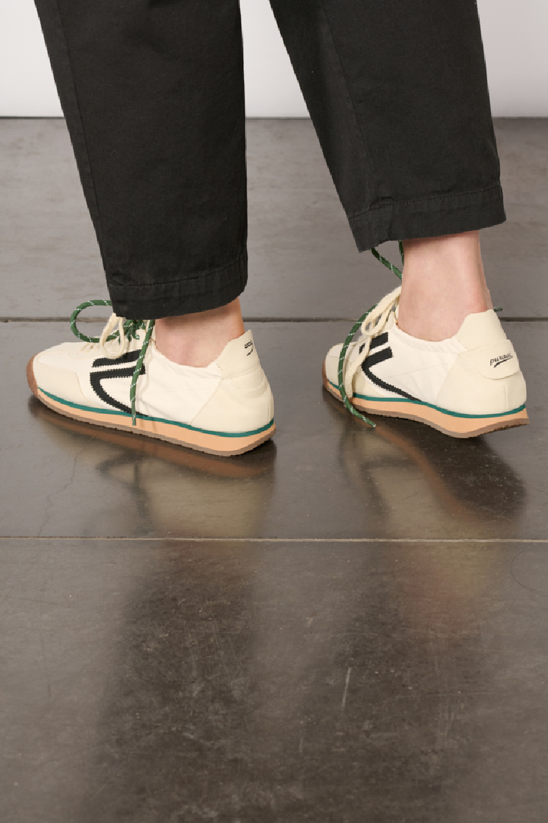 Baskets Panther écrues, coloris Salted Butter, de la marque Puraai, confectionnées en cuir vegan et micro-suède.