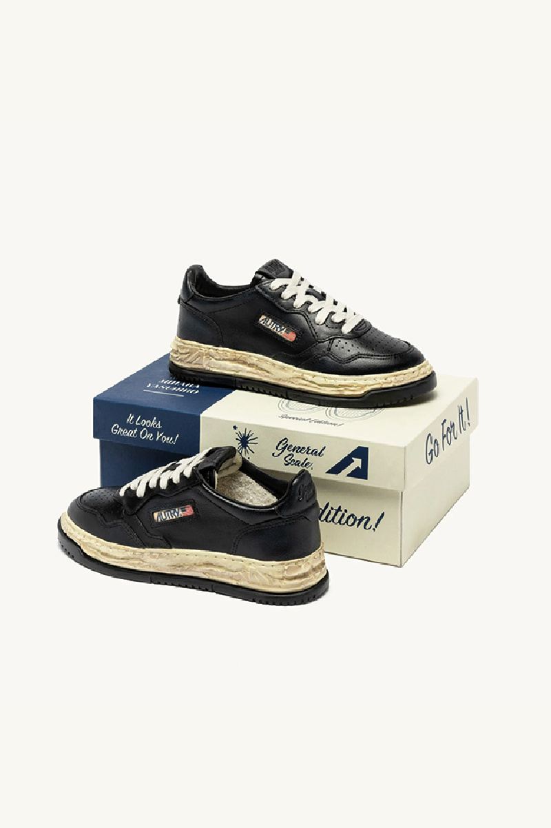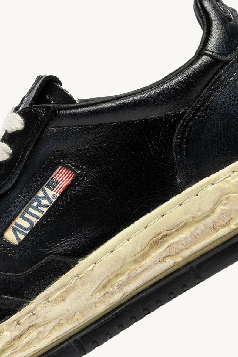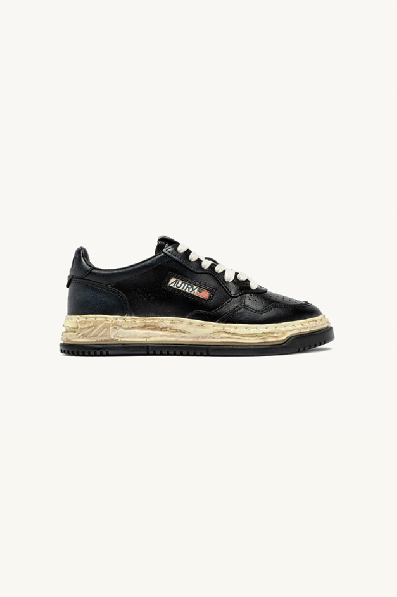 Baskets Medalist low en cuir noir de la marque Autry en collaboration avec Maison Mihara Yasuhiro.