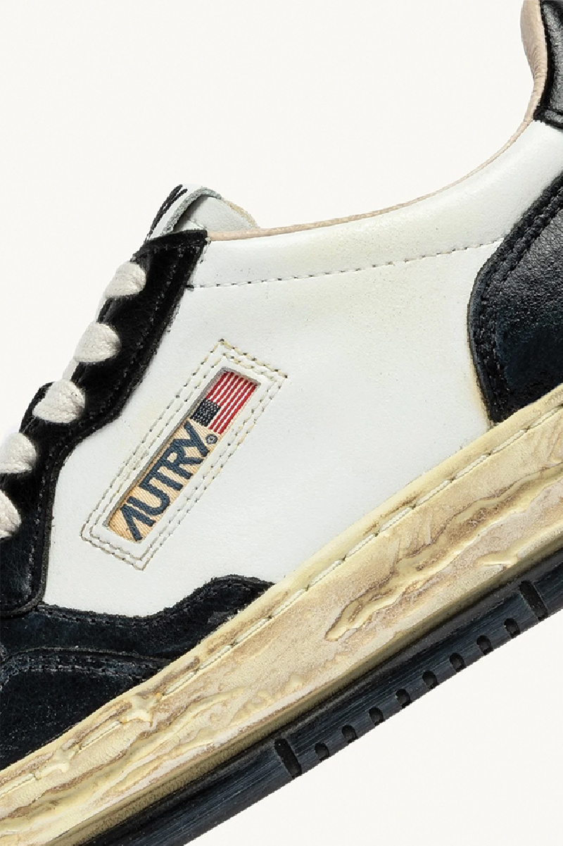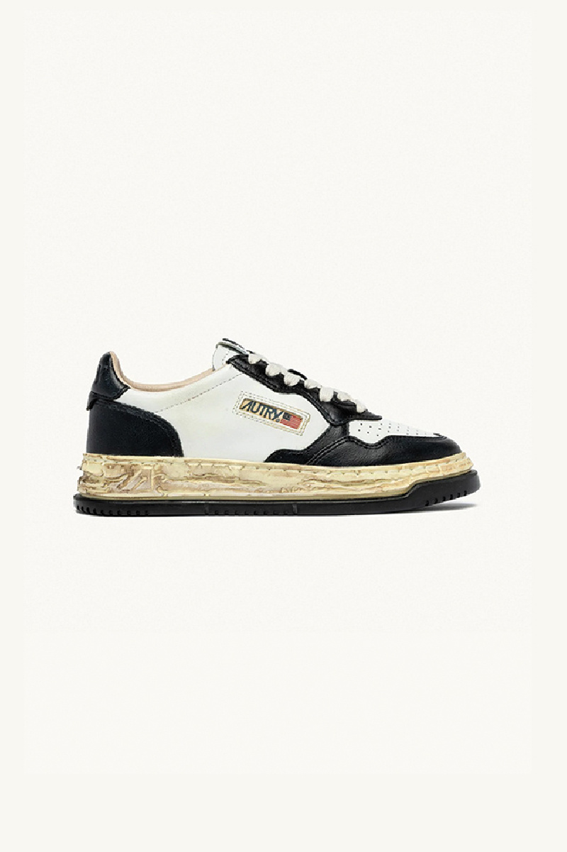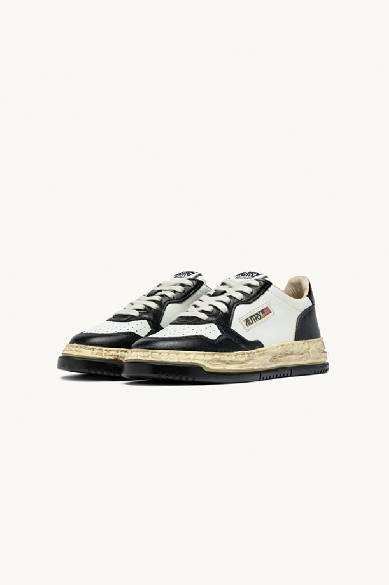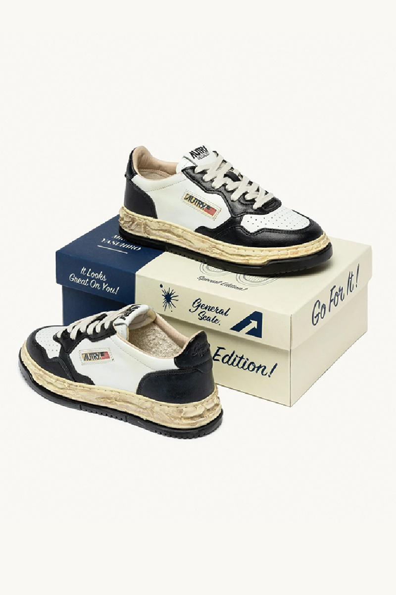 Baskets Medalist low en cuir blanc et noir de la marque Autry en collaboration avec Maison Mihara Yasuhiro.