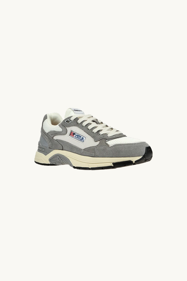 Baskets Hyperway de la marque Autry, en Daim gris et Mesh blanc.