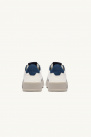 Elles offrent des détails latéraux en daim, un avant-pied micro-perforé, une semelle en caoutchouc, des lacets plats en coton, une languette avec étiquette brodée en nubuck bleu nuit ainsi qu'un détail arrière avec logo en cuir bleu foncé.