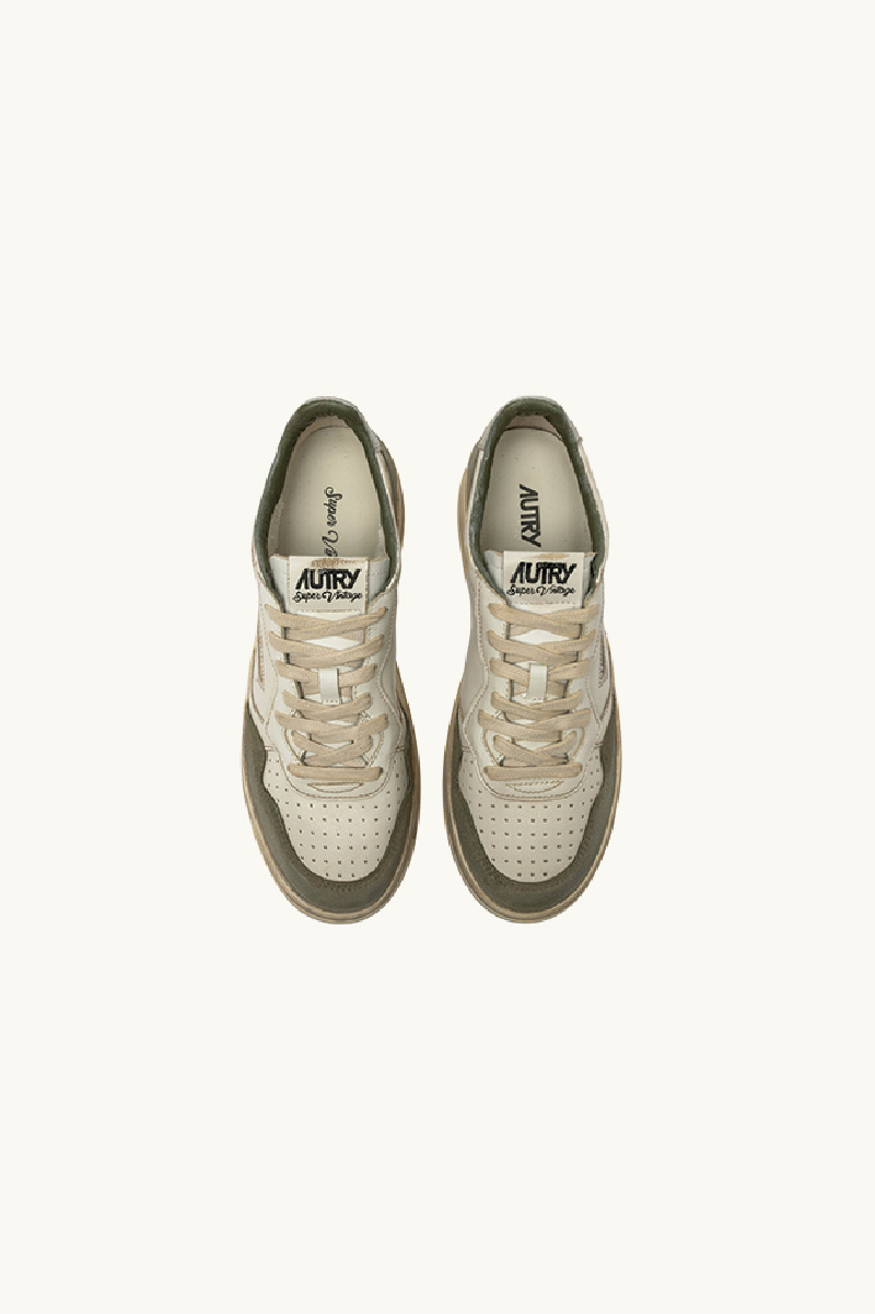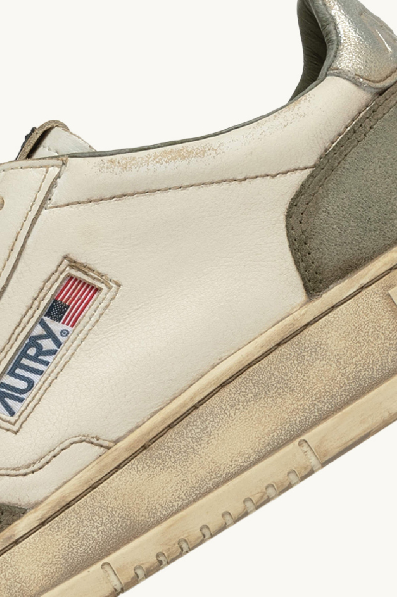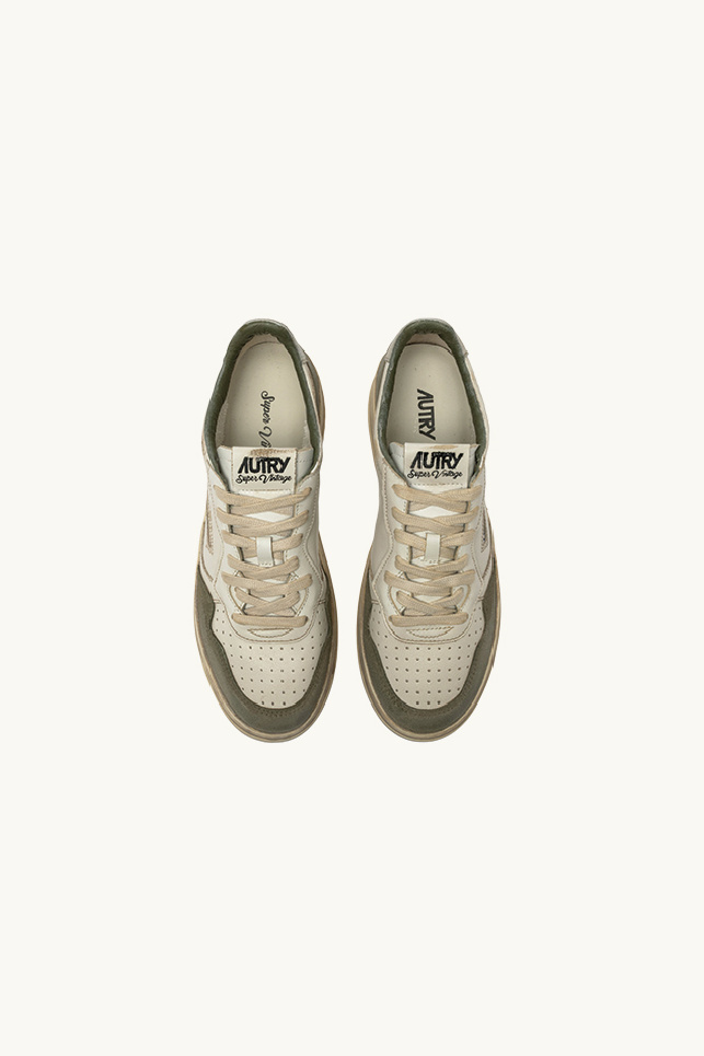 Baskets Super Vintage Low, en cuir blanc vieilli, de la marque Autry.