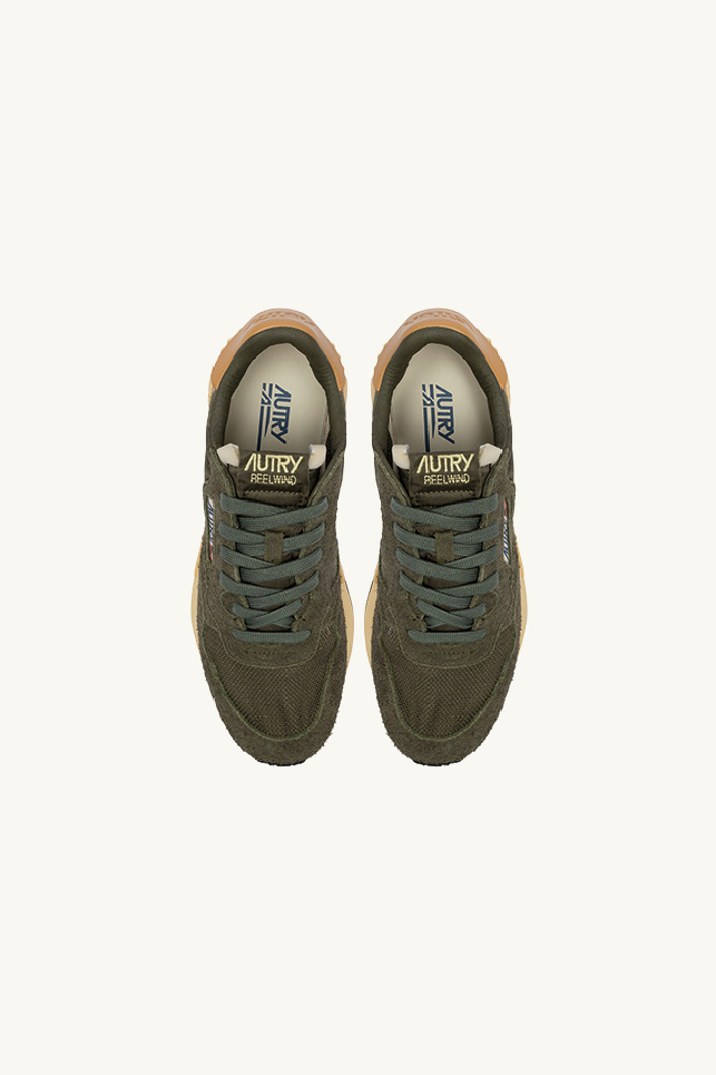 Baskets Reelwind Low, en daim et nylon kaki, de la marque Autry.