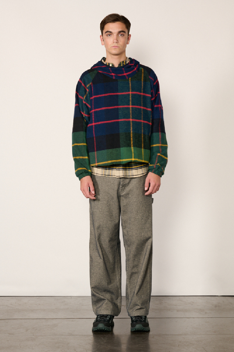 Pull à capuche confectionné en flanelle de coton à motif tartan, non doublé, de la marque Ts(S).