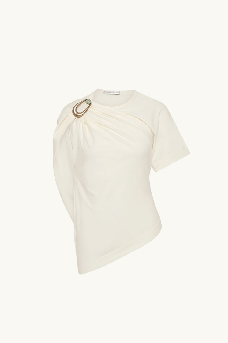 T-shirt Stone pin en coton blanc crème de la marque Christopher Esber.