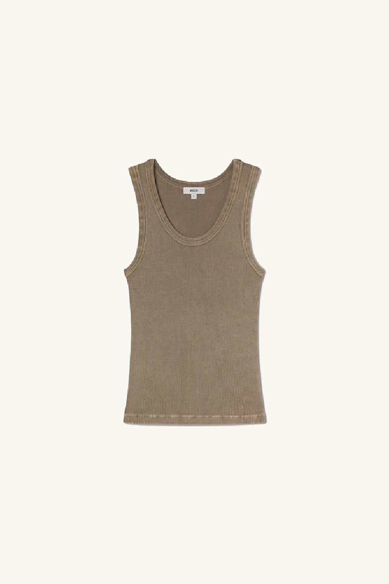 Débardeur Poppy confectionné en coton biologique côtelé de couleur kaki clair, de la marque Agolde.