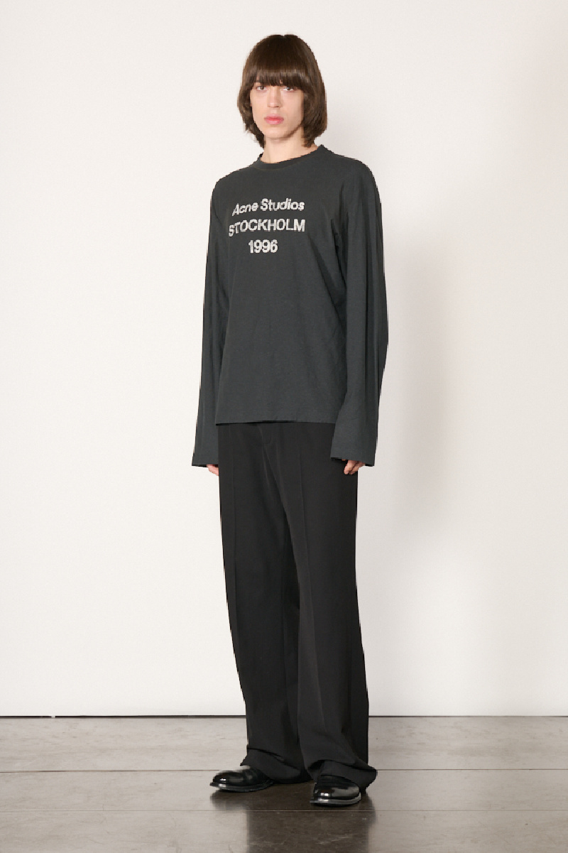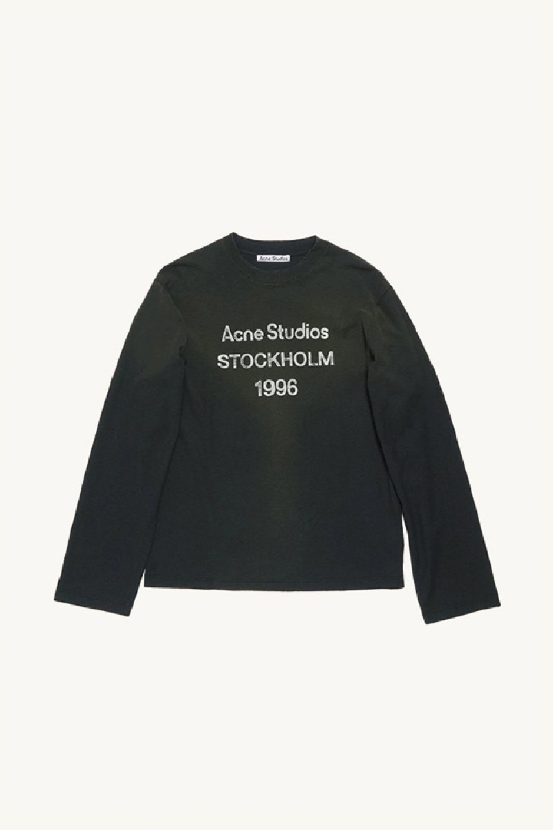 T-shirt logo noir effet usé à manches longues, confectionné dans un mélange de coton et de chanvre, de la marque Acne Studios.