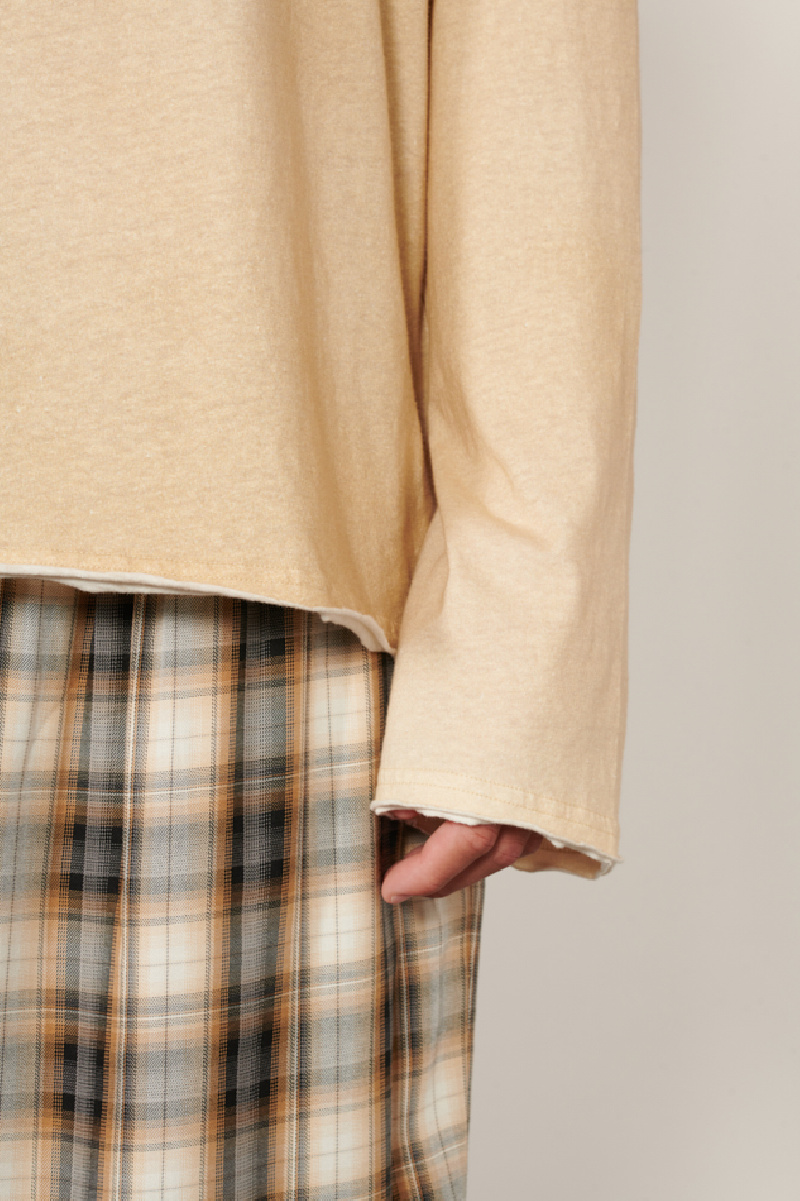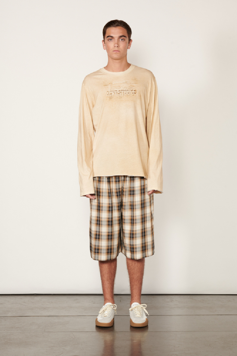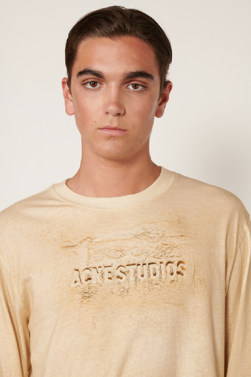 T-shirt logo manches longues couleur sable, confectionné en jersey de coton biologique avec un aspect vintage, de la marque Acne studios.