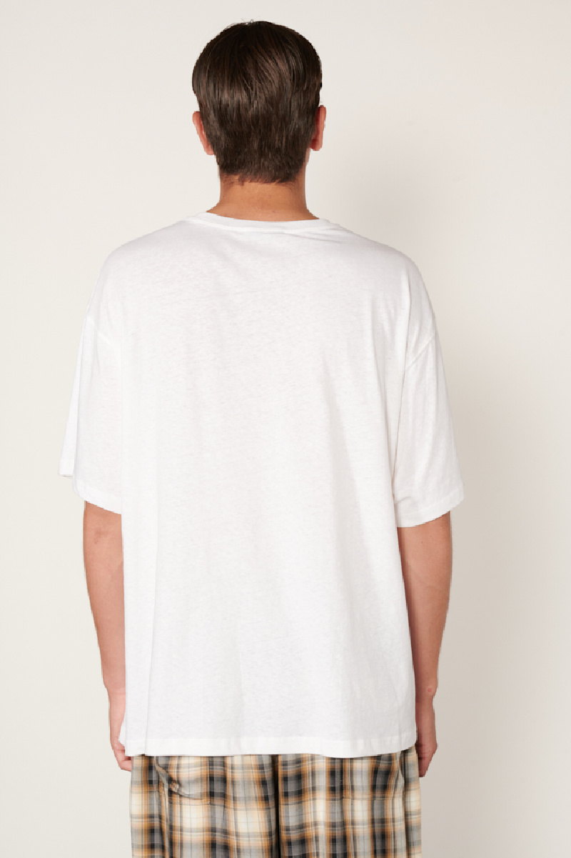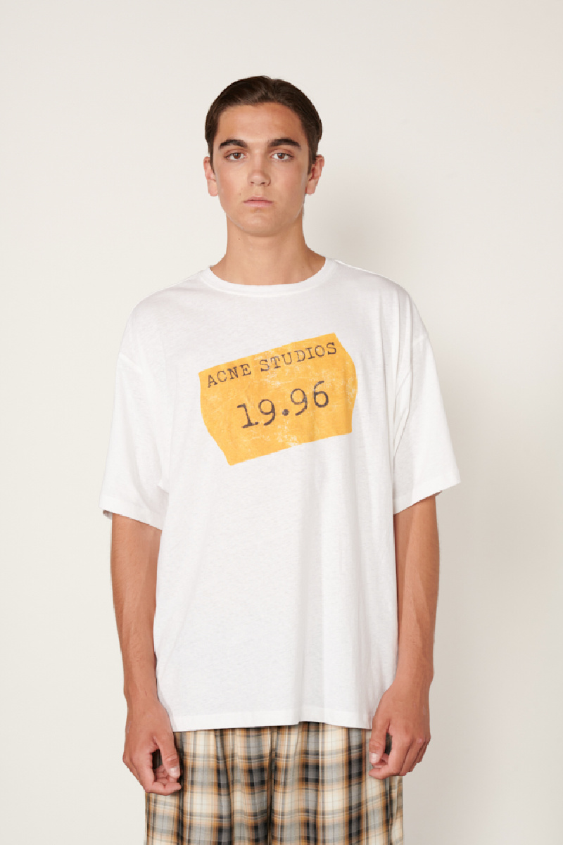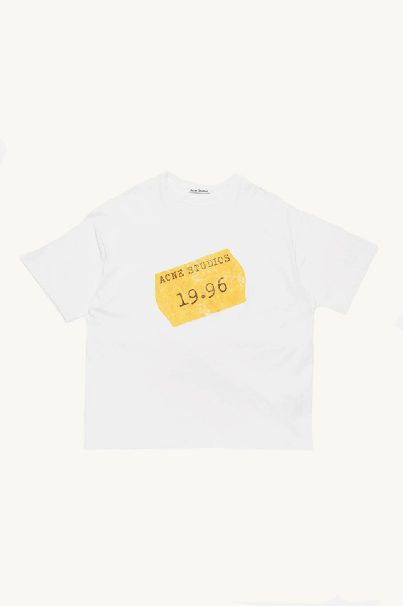 T-shirt avec une impression étiquette logo confectionné dans un mélange de coton biologique et de chanvre, de la marque Acne studios.