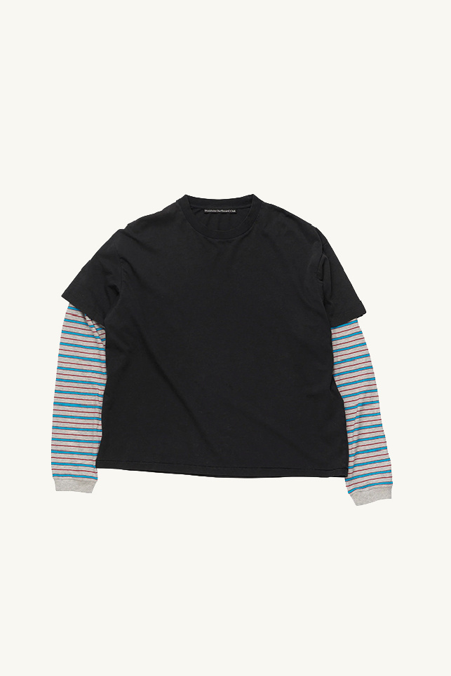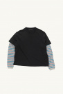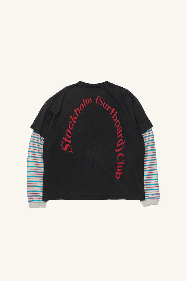 T-shirt superposé en coton noir et manches contrastantes rayées, signé Stockholm Surfboard Club.