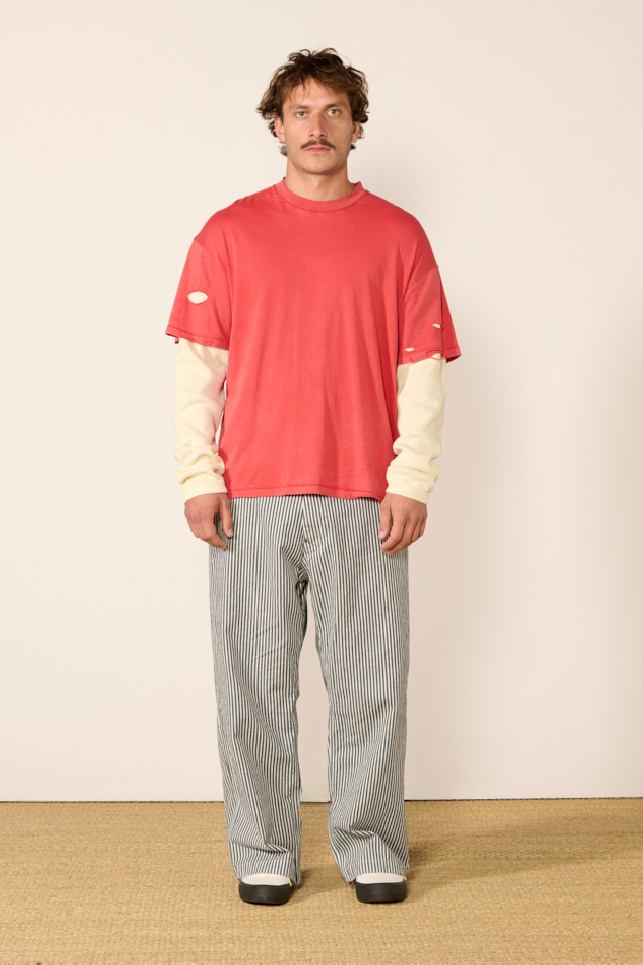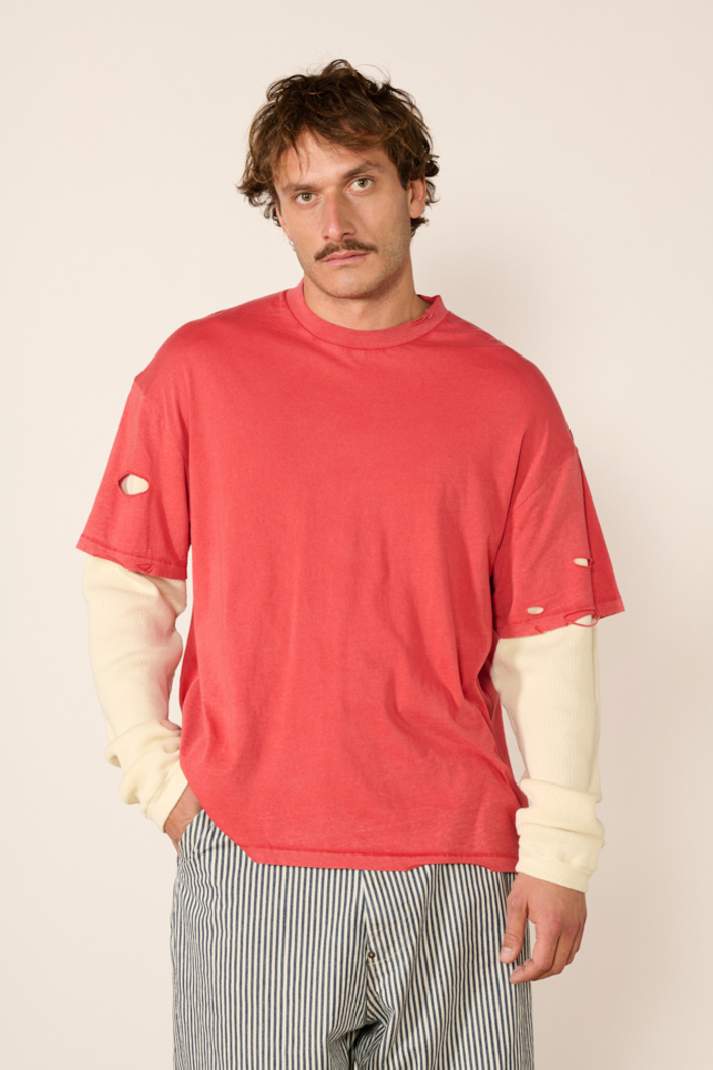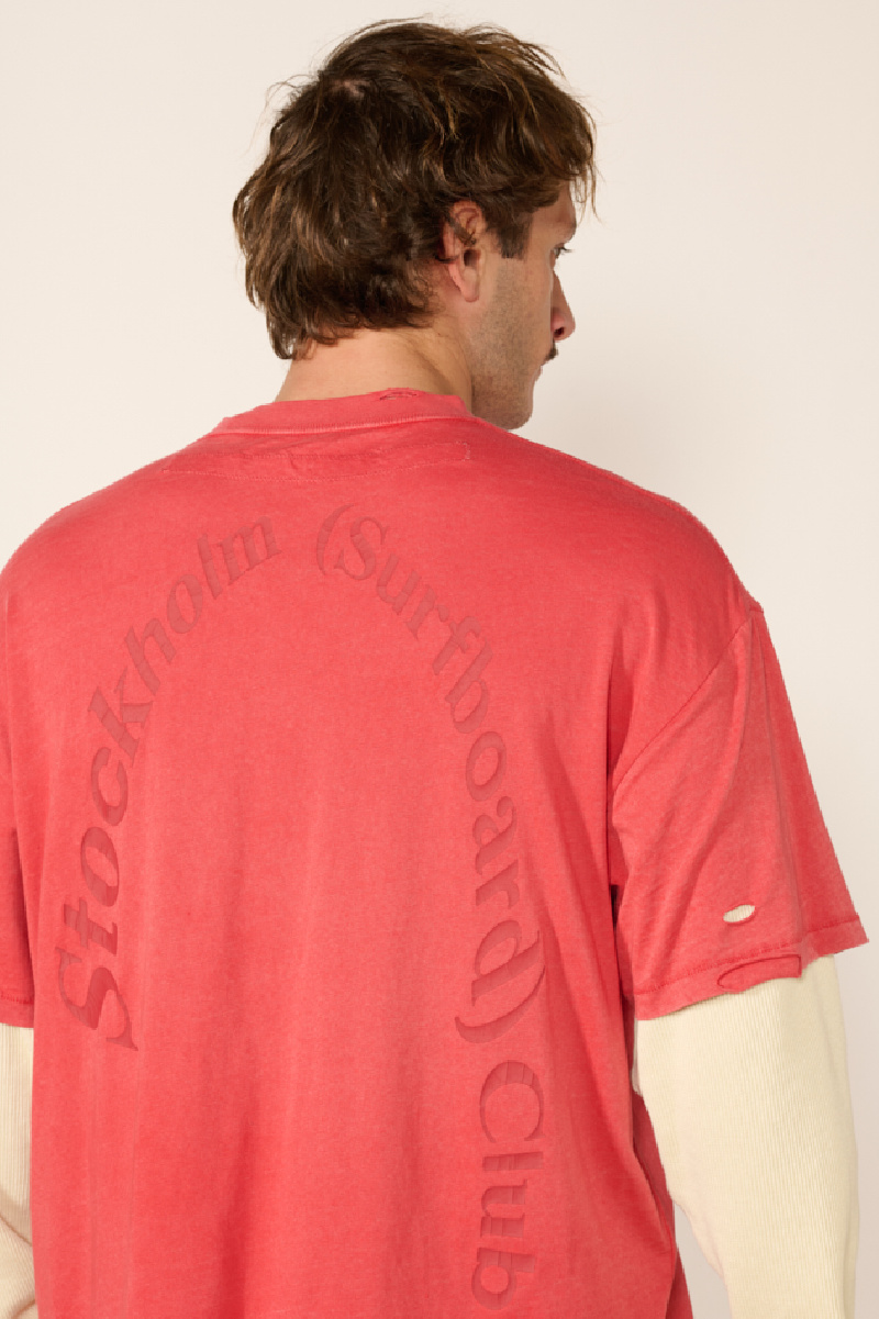 T-shirt superposé en coton rouge et blanc, de la marque Stockholm Surfboard Club.