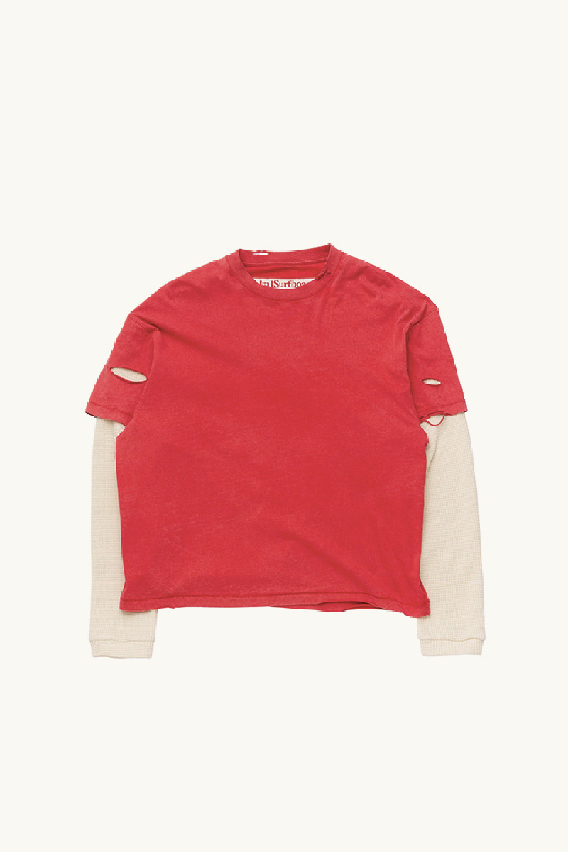 T-shirt superposé en coton rouge et blanc, de la marque Stockholm Surfboard Club.