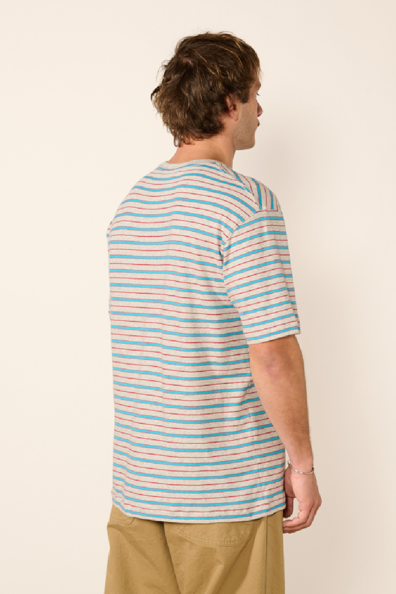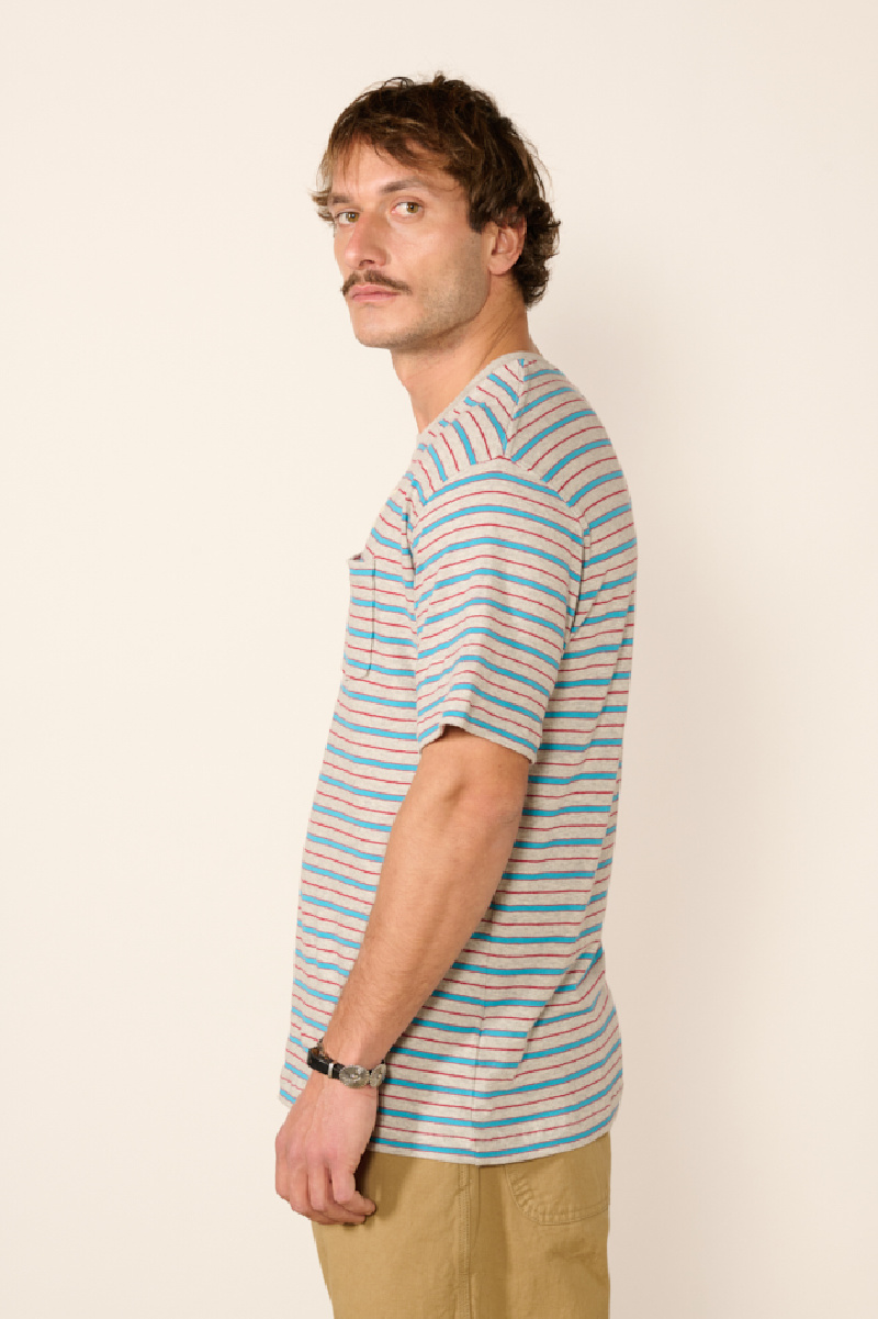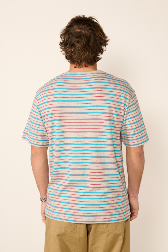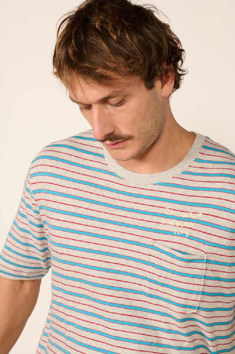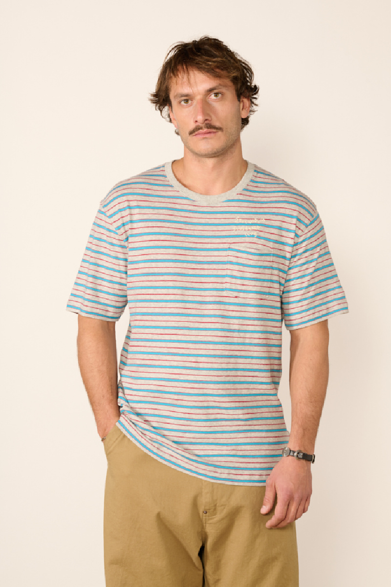 T-shirt manches courtes confectionné en fin coton à rayures jacquard, de la marque Stockholm Surfboard Club.