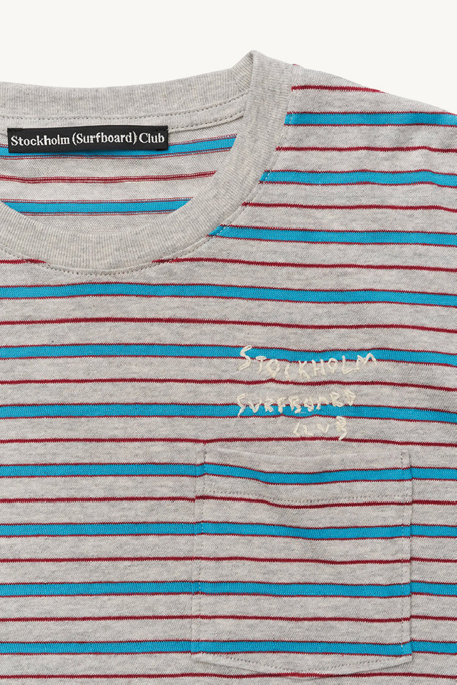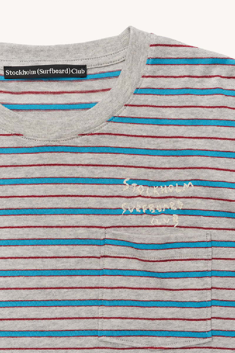 T-shirt manches courtes confectionné en fin coton à rayures jacquard, de la marque Stockholm Surfboard Club.