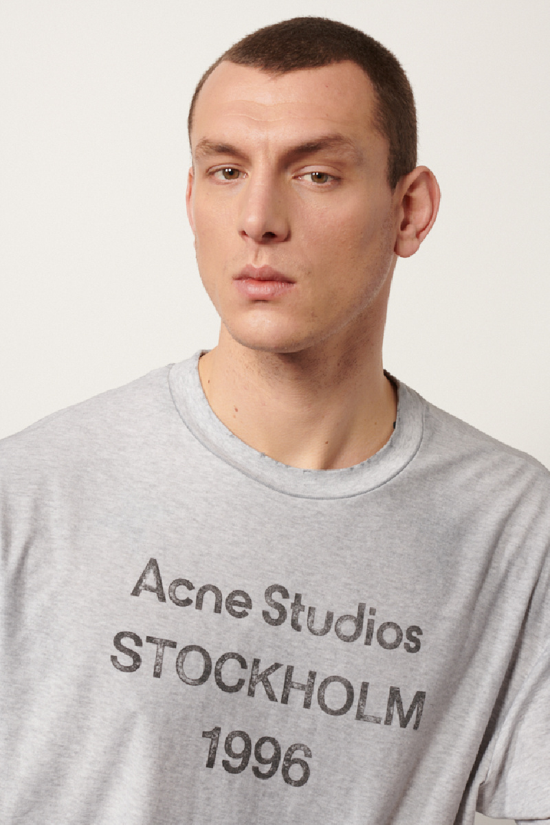 T-shirt logo gris effet usé de la marque Acne Studios.