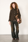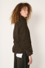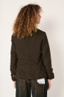 Elle offre une coupe ajustée courte, un col convertible, une fermeture par boutons ton sur ton, deux poches à rabat et une passepoilée sur l’avant, des manches légérement froncées, un ourlet arrondi, et deux fentes à l’arrière.