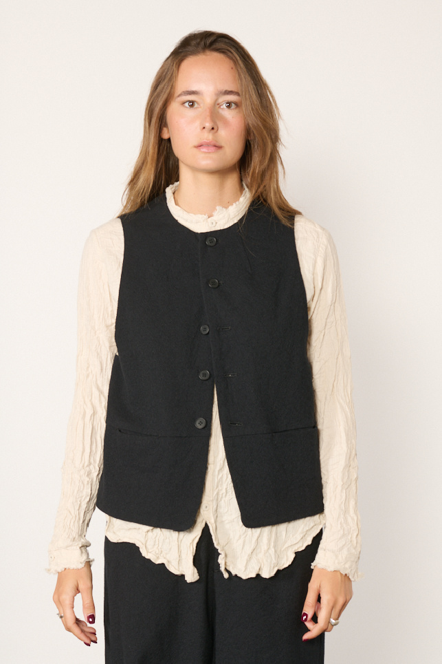Gilet sans manches en mélange finement texturé de laine et de coton noir, de la marque Pas De Calais.