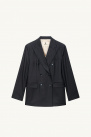 Elle offre une coupe ajustée à double boutonnage, un col italien, deux poches à rabat et une poche passepoilée à l’avant, une poche intérieure, et une double fente à l’arrière.