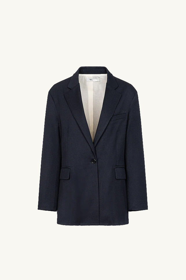 Veste de tailleur, en laine bleu foncé, de la marque Sibel Saral.