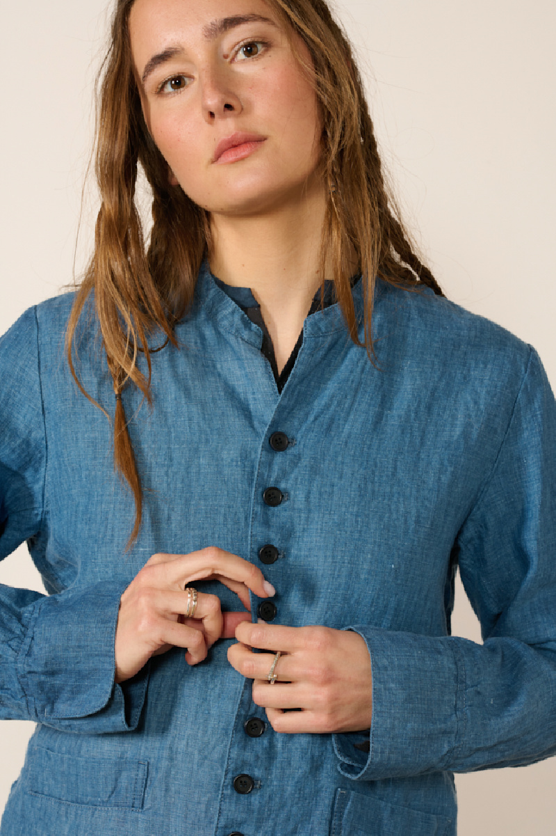 Veste légère en lin bleu, de la marque Pas de Calais.