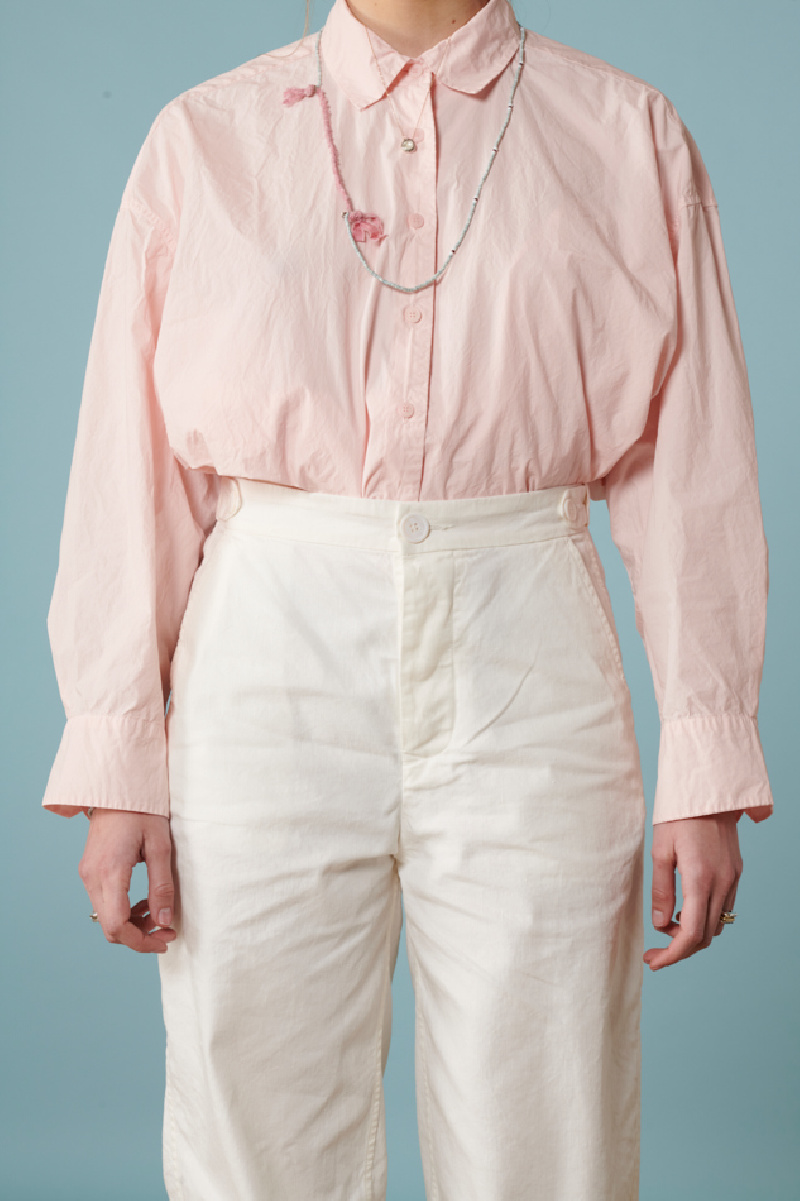 Pantalon Jude en lin et en coton de la marque Casey Casey, blanc, coupe droite, fermeture à la taille par une braguette boutonnée, bouton de chaque côté pour son ajustement, élastique au dos au niveau de la taille, poches à l'avant et à l'arrière.