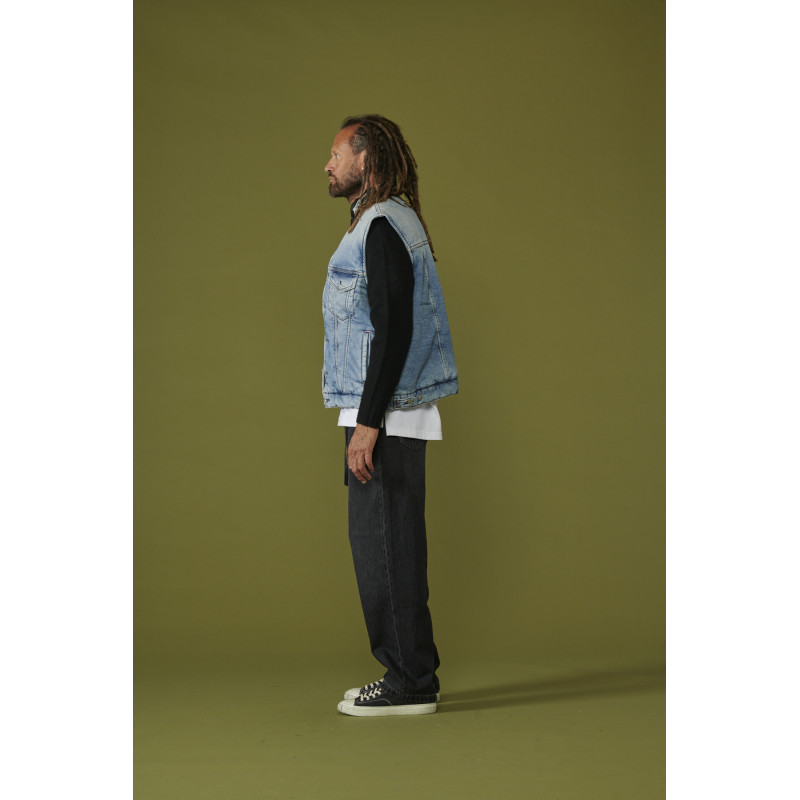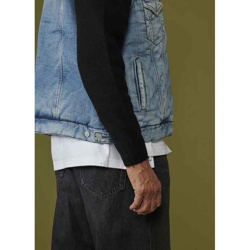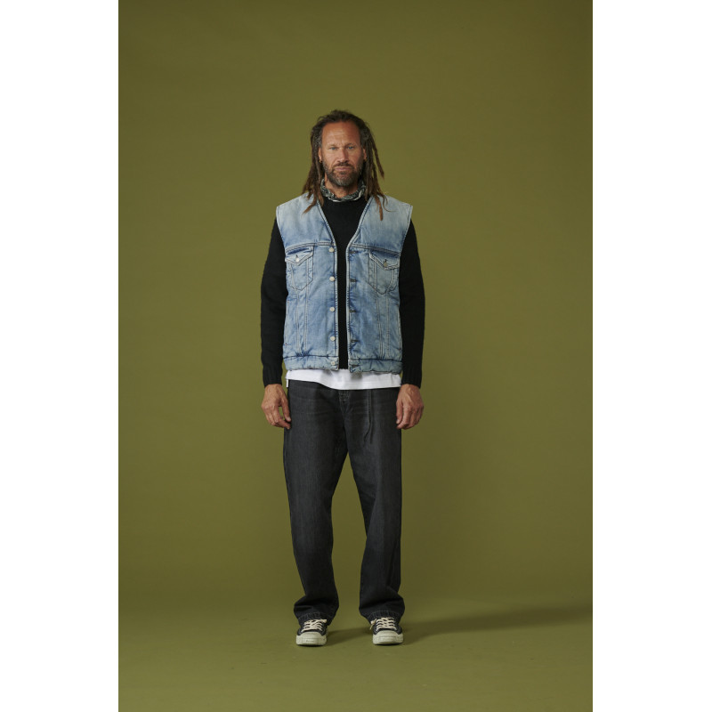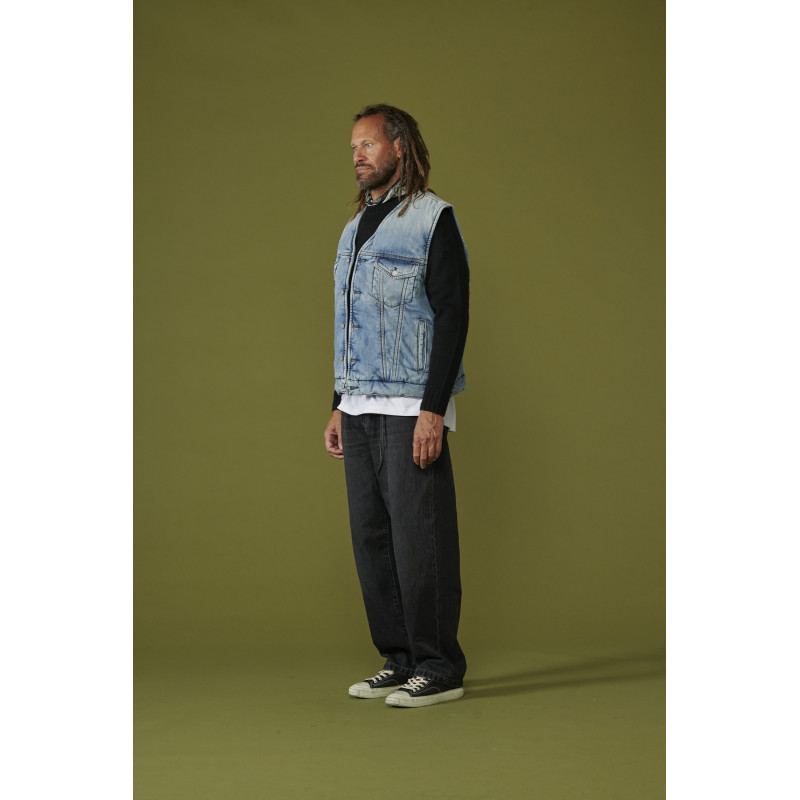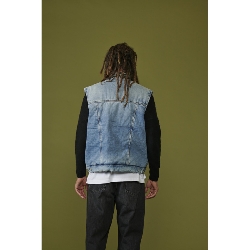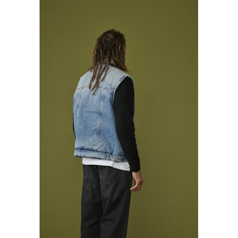 Gilet sans manches en jean de la marque Acne Studios, fermeture boutonnée, doublure rembourrée, poches poitrines et latérales, coupe oversize.