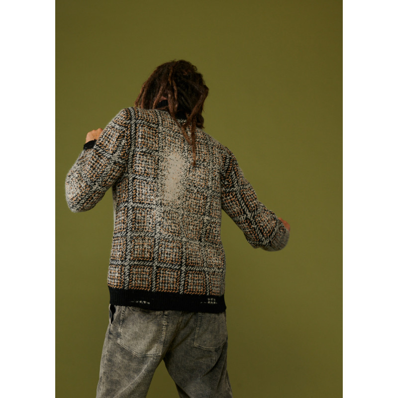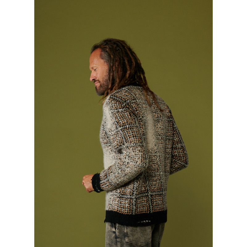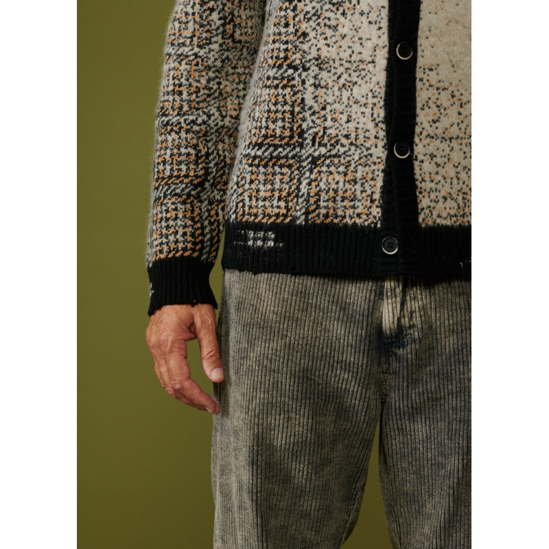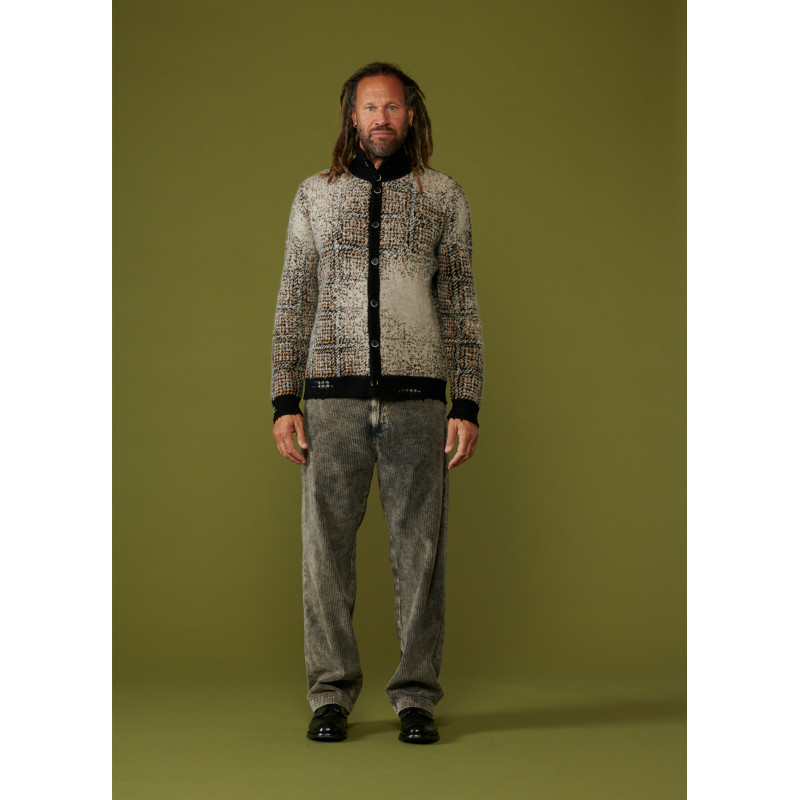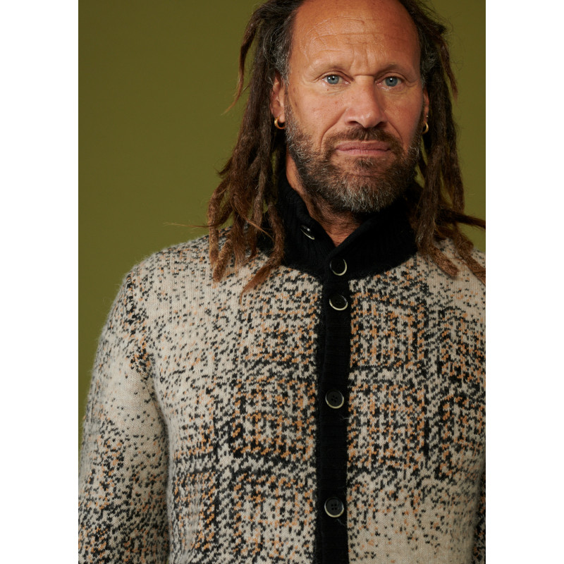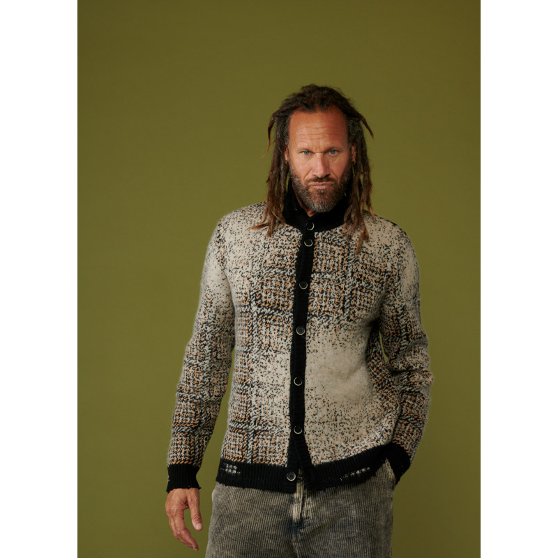 Gilet Ventana Barena, manches longueurs standard, col montant, fermeture par boutonnage, poignet/ourlet/col côtelés, motif irrégulier.