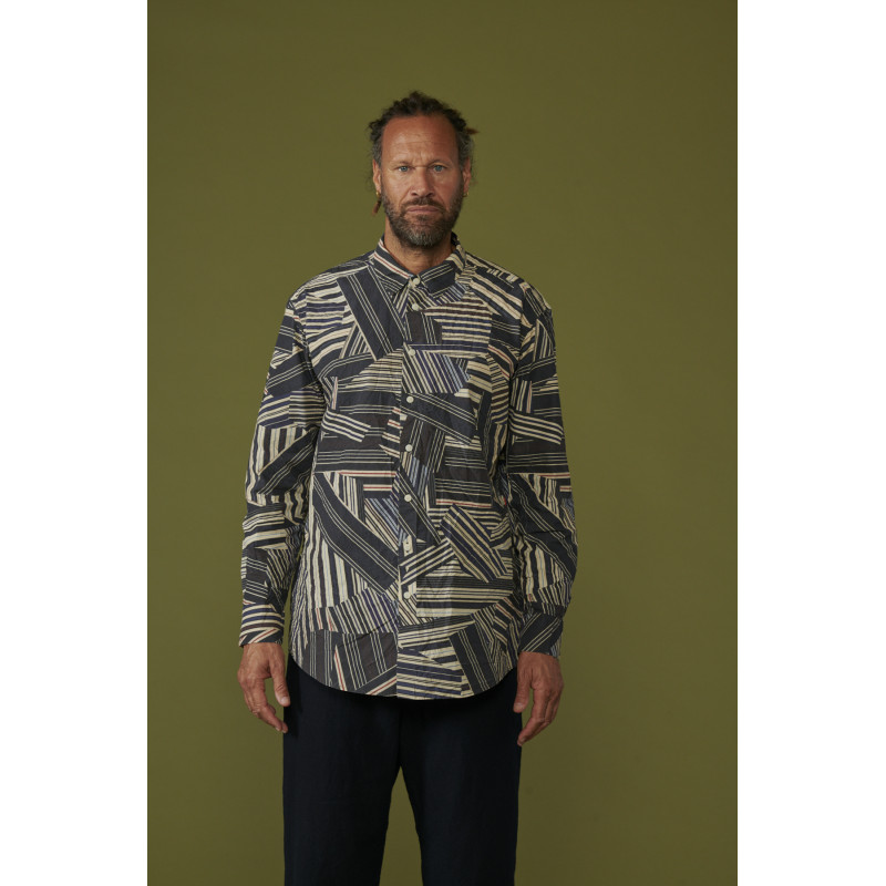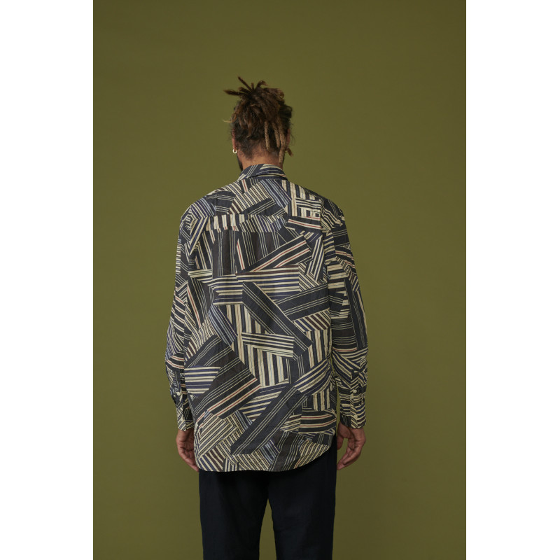 Chemise Felix de la marque Casey Casey à imprimé, col chemise, fermeture par boutons, fermeture également aux poignets, coupe oversize et longue, effet froissé.