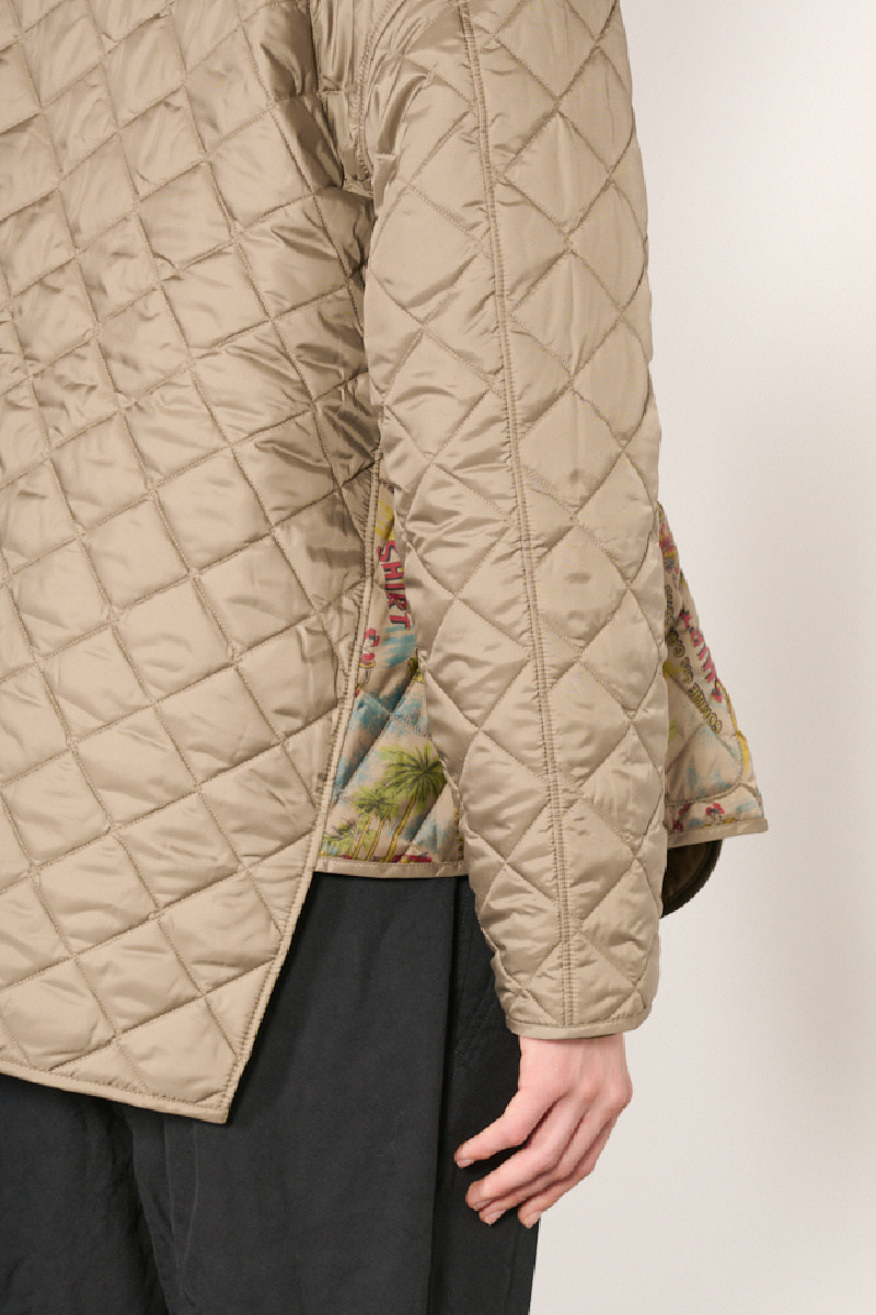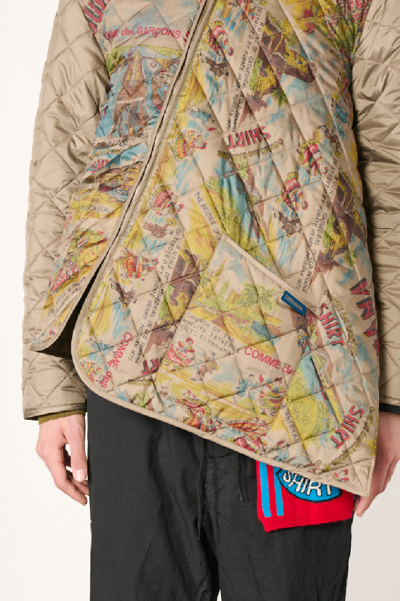 Veste matelassée beige de la marque Comme des Garçons Shirt en collaboration avec Lavenham.